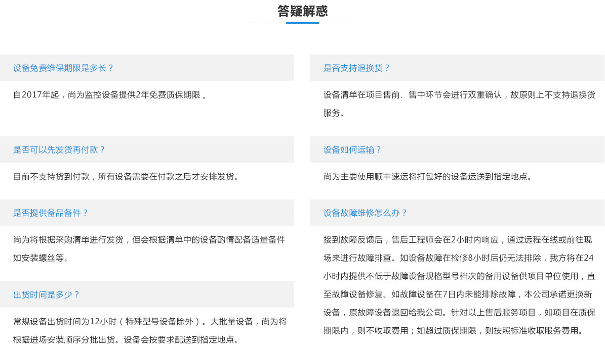 設(shè)備清單在項目售前、售中環(huán)節(jié)會進(jìn)行雙重確認(rèn),故原則上不支持退換貨服務(wù)。